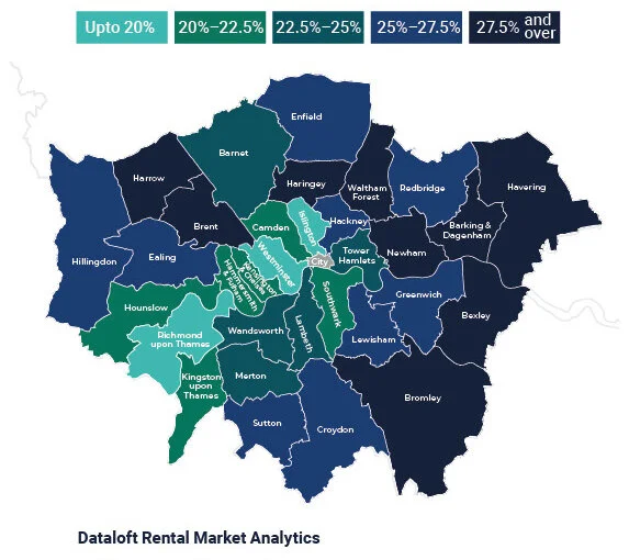 Within London there are variations between boroughs, which seem to align with the distribution of the sharer market versus the family rental market. It is notable that 51% of tenants in London are aged between 20 and 29 – the demographic most likely to have retreated to a family home outside the city during Covid-19.